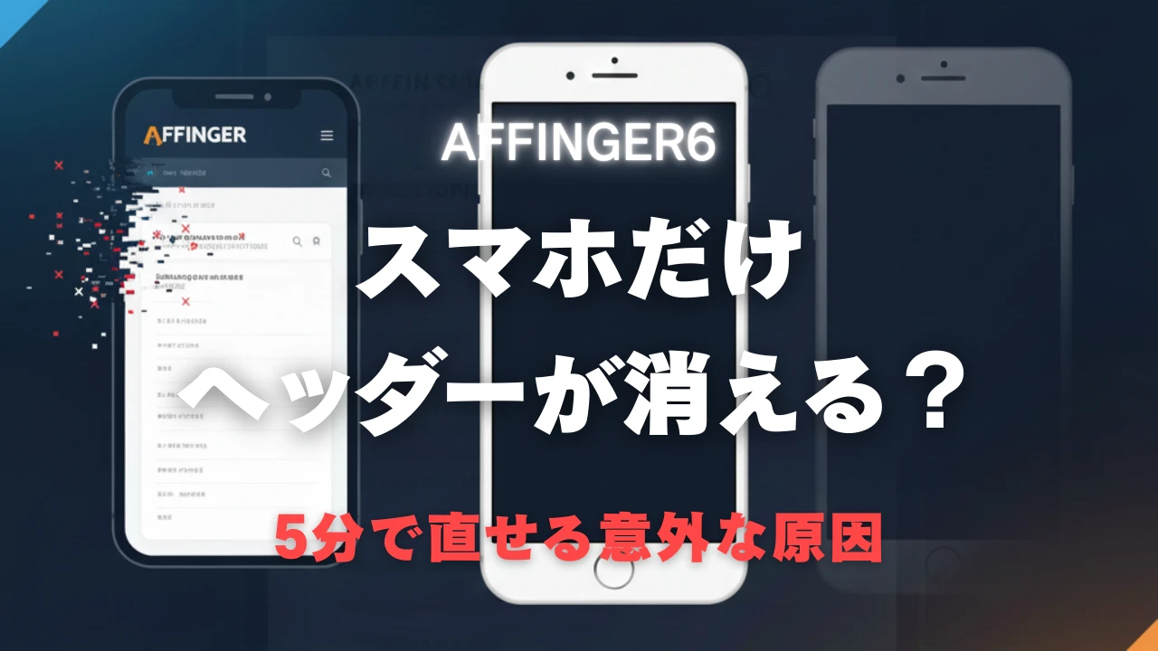 スマホだけヘッダーが消える原因の9割は、AFFINGER管理画面の「スマホ・タブレット閲覧時は非表示」にチェックが入っているせいです。