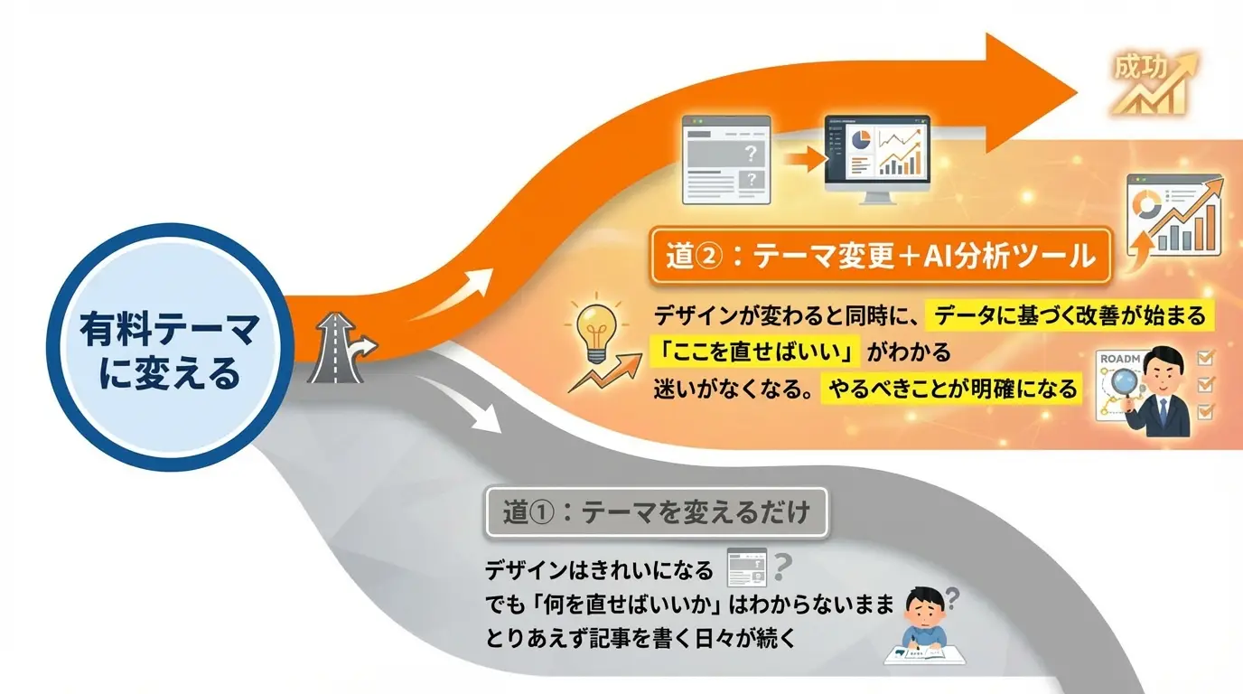 有料テーマに変えようと思った今が、サイトを本気で伸ばす最大のチャンスです。