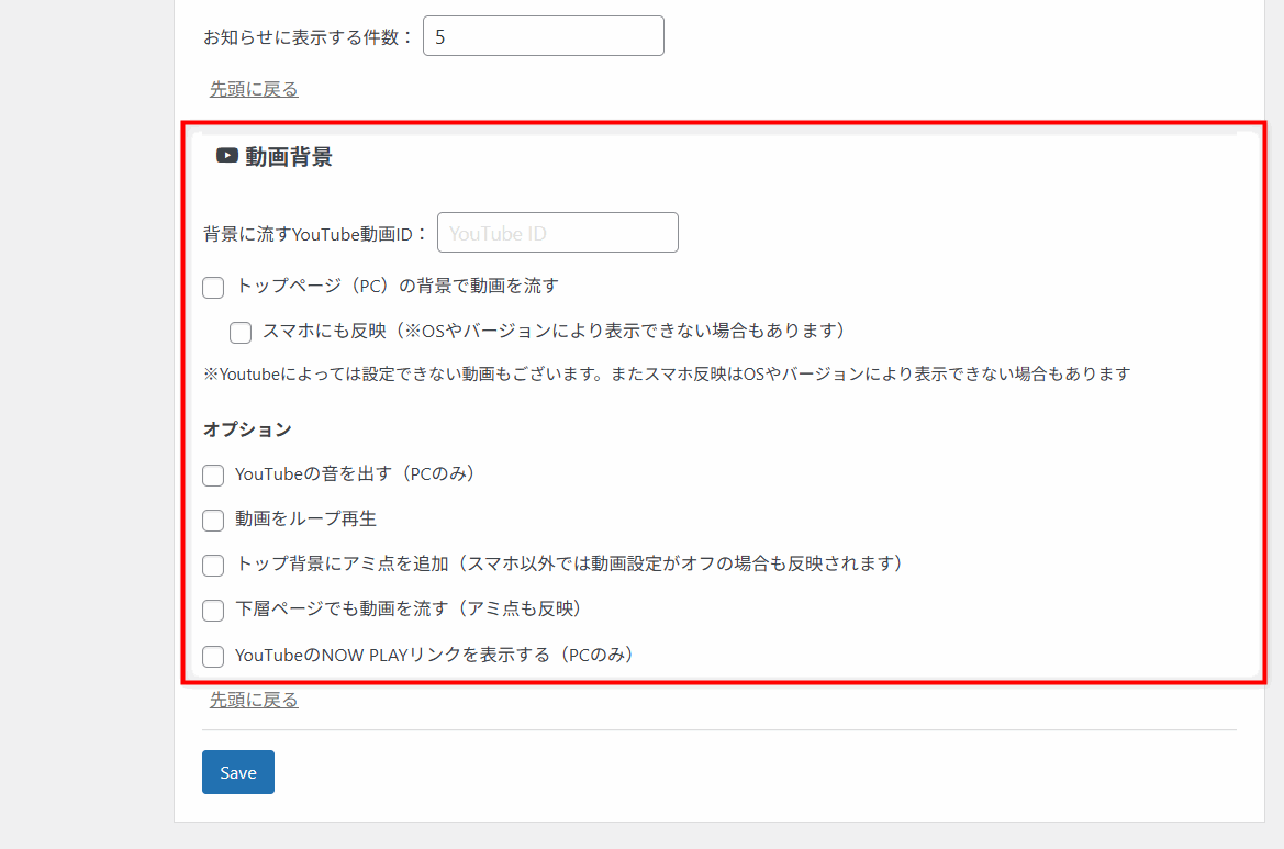 ※ヘッダー画像エリアにYouTube動画を流す方法は以下の記事で解説しています。