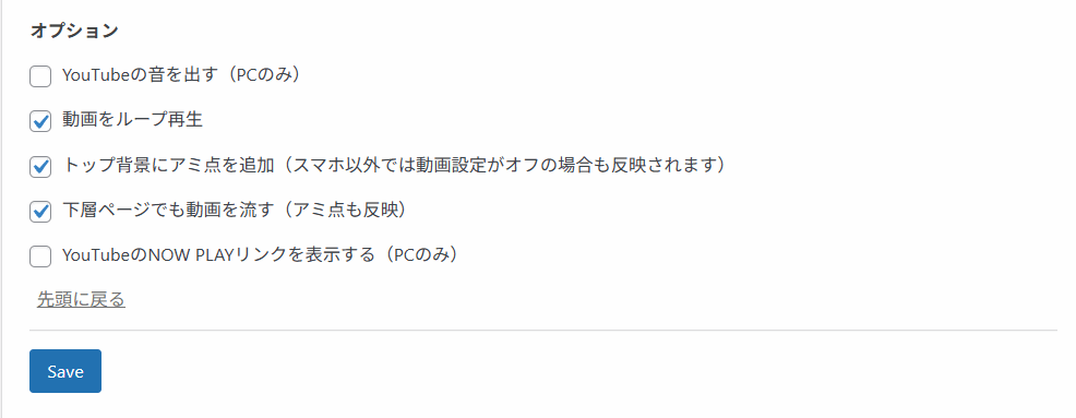 - AFFINGER管理 > トップページ > 動画背景 を開く